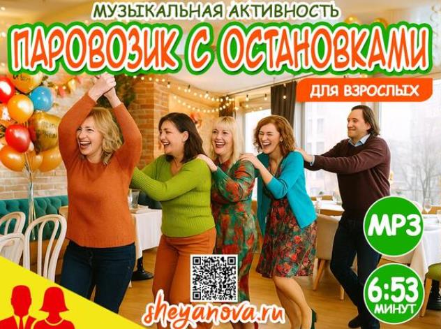Погрузитесь в захватывающее путешествие с "Паровозиком для взрослых" — уникальной танцевальной игрой для взрослых! Эта веселая и увлекательная игра проходит под единый музыкальный трек с встроенными голосовыми командами. Взрослые выстраиваются "паровозиком", держась друг за друга, и следуют за ведущим-аниматором. Голосовой помощник говорит различные задания, которые нужно выполнить.